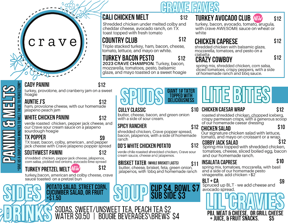 At Crave Azle, every dish is an invitation to indulge in fresh, delicious flavors that make every meal feel like a special occasion. From mouthwatering appetizers to satisfying main courses, the Crave Azle Menu offers a variety of options to satisfy all cravings. Whether you're in the mood for a juicy burger, a flavorful pasta, or a hearty salad, there's something for everyone. The relaxed atmosphere paired with a well-curated menu makes it the perfect spot for a casual lunch or dinner with friends and family. With locally sourced ingredients and bold flavors, every bite promises to be a treat. Whether you're here for a quick meal or a leisurely dining experience, you’ll find that Crave Azle brings a little extra something to the table.
